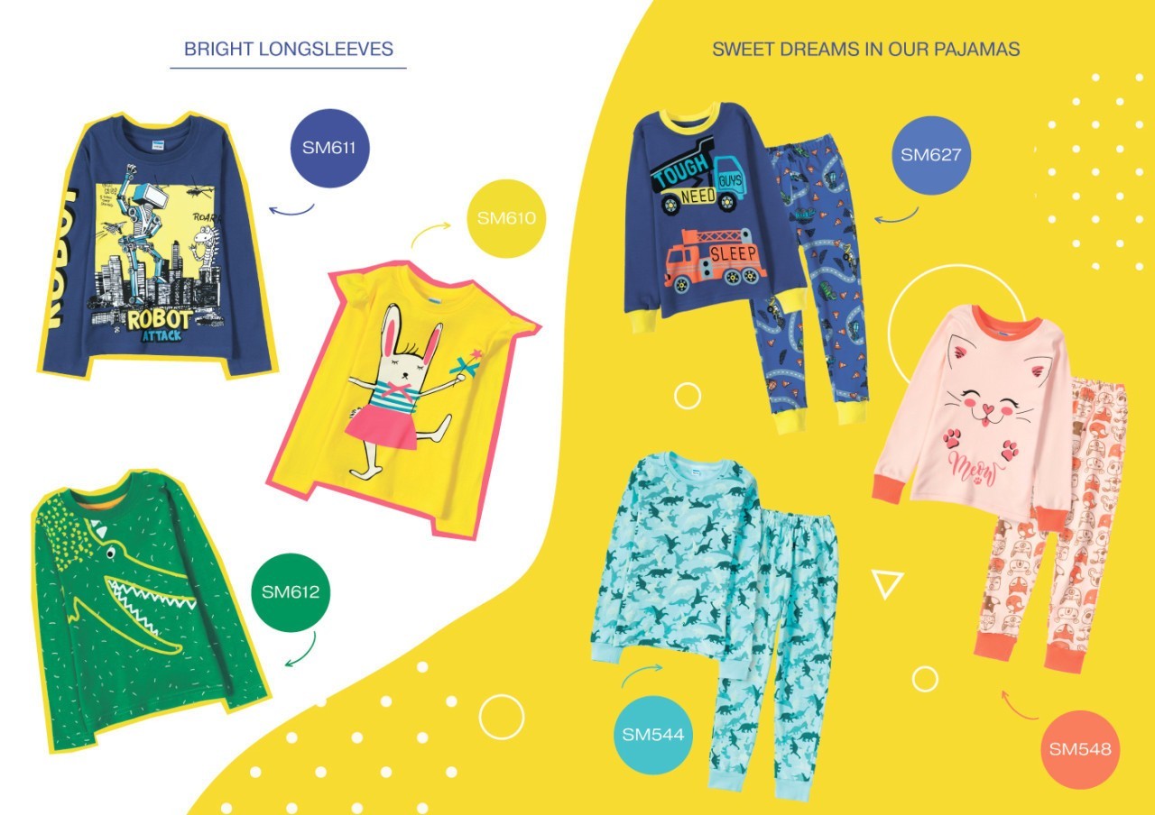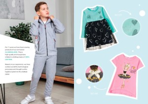 Детская одежда из трикотажа: пижамы, комплекты, футболки, шорты. Взрослая одежда: платья, рубашки, брюки.