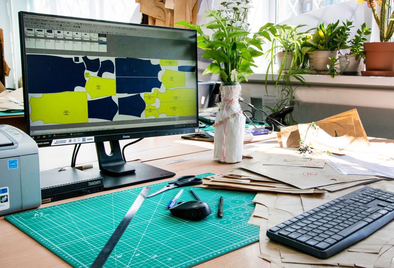 швейные машины, раскройный комплекс, печатный станок, станок для ДТФ печати, термопресс и др. Есть свой художественно-конструкторский отдел, осуществляется цифровая печать на тканях.