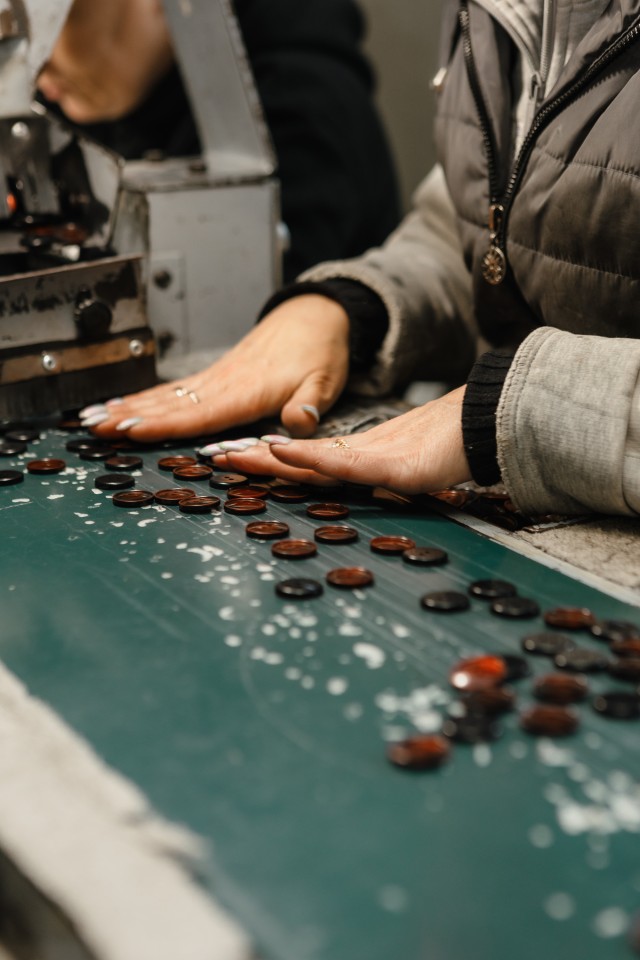 Компания обладает парком современного оборудования для придания пуговицам и фурнитуре необходимой формы, шлифовальное оборудование позволяет достичь нужной степени полировки изделий. Имеется профессиональное в том числе роботизированное оборудование для промышленной покраски фурнитуры, а также парк из лазерного оборудования для нанесения логотипов и лазерной резки.