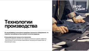 Фабрика VINTAGE DENIM была основана в 2019 году. На сегодняшней день фабрика зарекомендовала себя как ведущий производитель джинсовой одежды. Каждый этап производства — от выбора тканей до финальной обработки — находится под строгим контролем. Используются только высококачественные ткани, которые проходят несколько стадий обработки, включая покраску и смягчение, что обеспечивает долговечность и комфорт изделий. Специалисты фабрики следят за последними тенденциями в моде и внедряют инновационные технологии, такие как лазерная обработка и экокрашение, чтобы джинсы были не только стильными, но и экологичными. Фабрика гарантирует высокое качество продукции, четкое соблюдение сроков и гибкий подход к требованиям клиента.