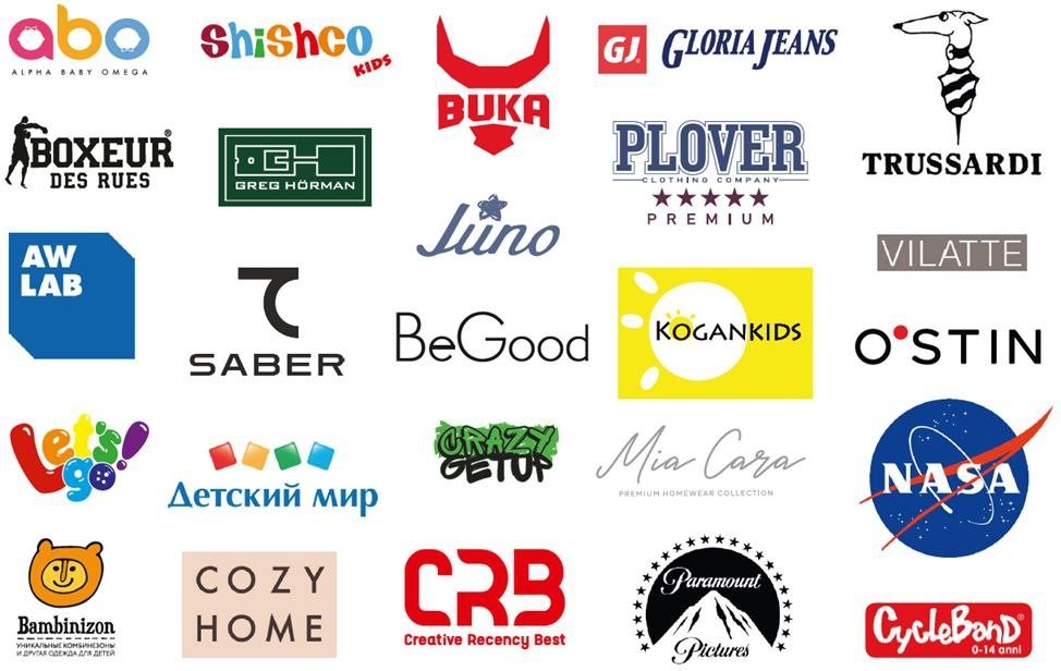 BeGOOD, Mia Cara, Cozy Home, BabyGo, FUTURINO, CRB, KOGANKIDS, JUNO, GLORIA JEANS, CRAZY GETUP, JOGEL, SELA, TISHKA, BE FREE.